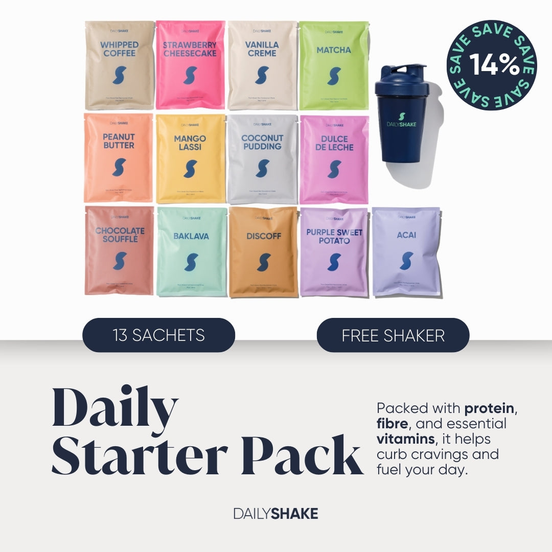 The perfect introduction to daily shake! Our starter pack contains 13 delicious flavours + a FREE Daily Shake Shaker.